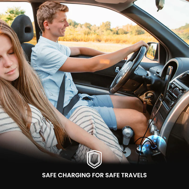 Stay fully charged during your road trips with PULSE 60, our high-powered 60W car charger featuring dual USB-C ports for simultaneous device charging.